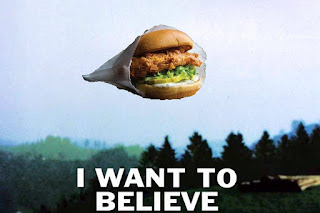 Scully, mas com o disco voador substituído por um hamburguer, homenageando o G